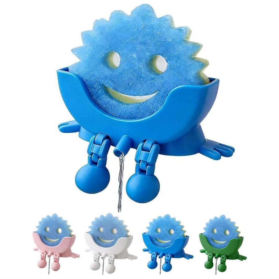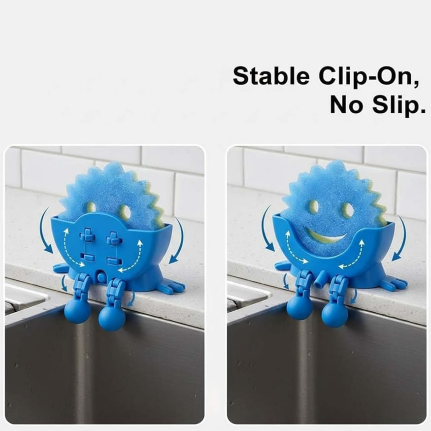 这款有趣的海绵架特别设计用于固定圆形笑脸形状的海绵,能确保海绵保持直立且固定不动。独特巧妙的排水槽设计,能让积水直接排出,有助于海绵更快干燥。使用时只需将海绵架挂在水槽或托盘的边缘即可。