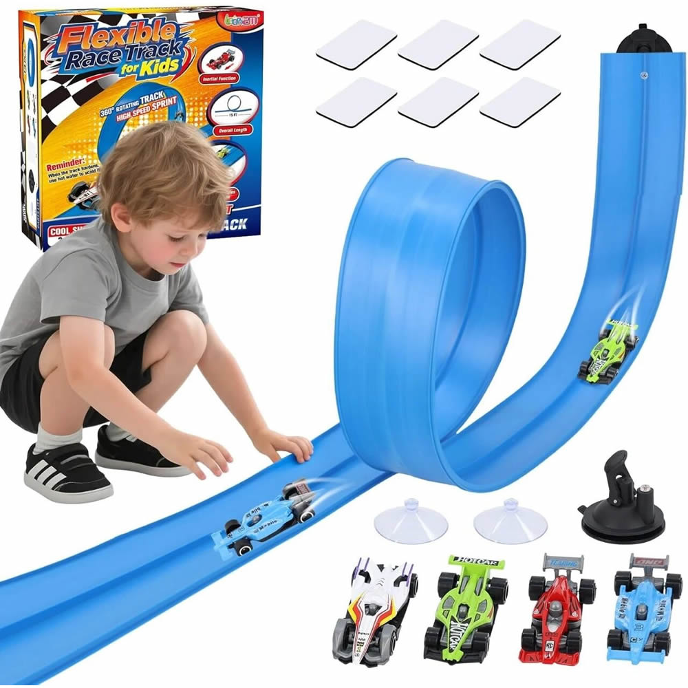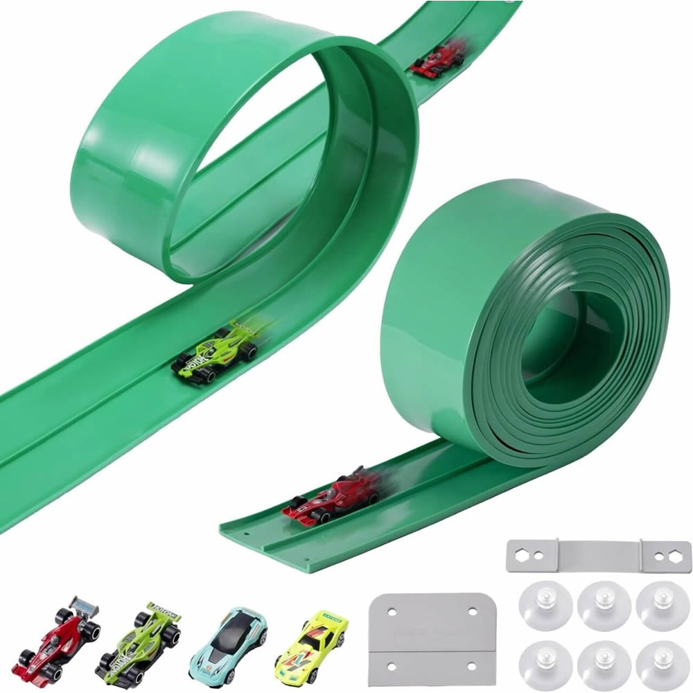 这款15英尺的柔性轨道可以弯曲成圆圈、螺旋和爬坡,在短短30秒内建立一个定制的赛车世界。观看玩具车在赛道上加速,每一场比赛都是创造力和积极游戏的完美结合。非常适合标准1:64比例的金属汽车模型、小型越野卡车、迷你玩具车,甚至大理石。
