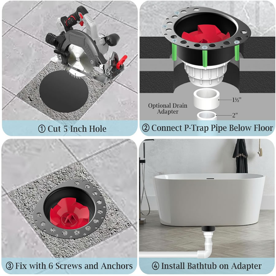 浴缸排水管和溢流套件适用于所有独立式浴缸、落地式浴缸和岛屿浴缸,专为 25.2 厘米/20.2 厘米地板托梁空间设计。