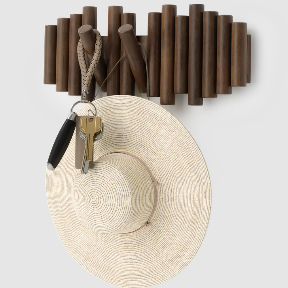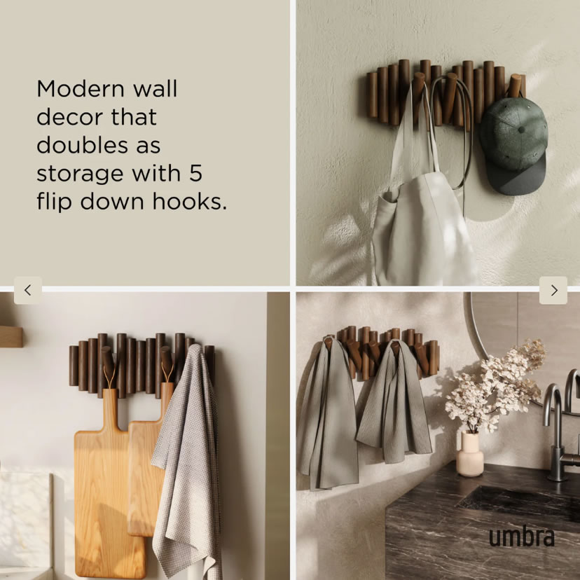 Umbra Picket 墙钩精致实用,兼具墙面装饰功能。采用精美的斜角松木制成,不仅仅是一个挂钩;它是一件精心设计的物件,能为任何空间增添温暖与个性。五个可翻转的挂钩,每个可承重 5 磅,可轻松收纳外套、包袋或珠宝,折叠后可保持简洁简约的外观。