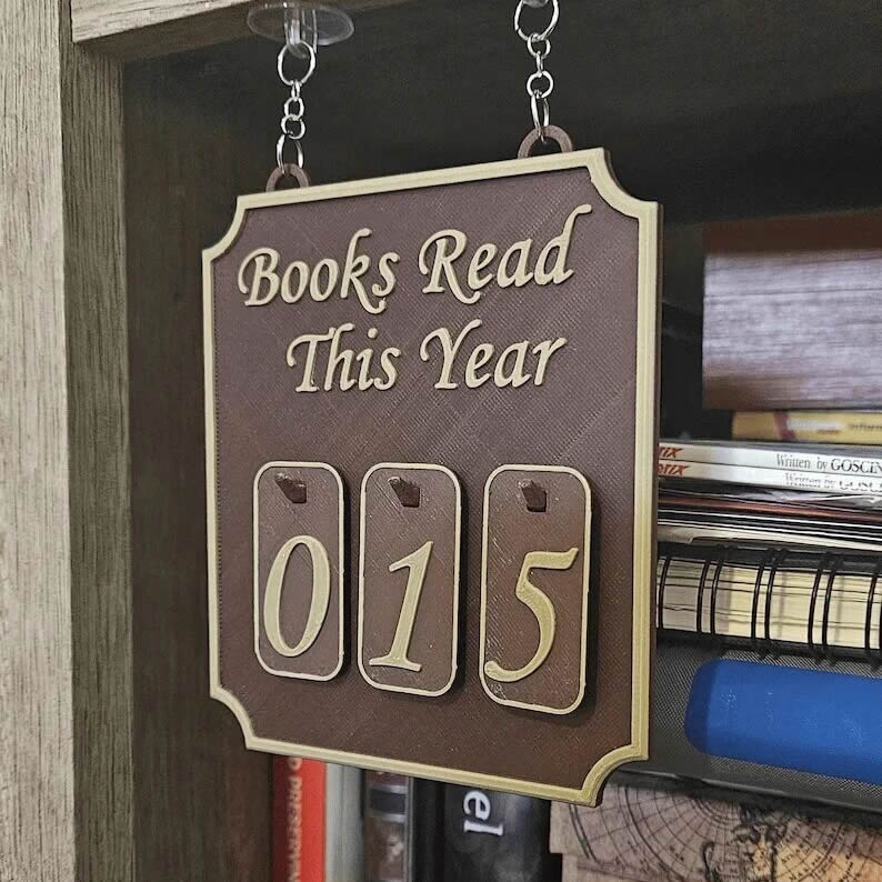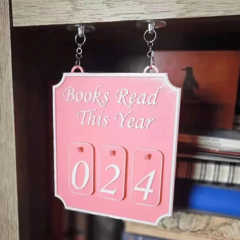这个产品的作用是悬挂在书架上,用来记录在一年里阅读了多少本书籍。