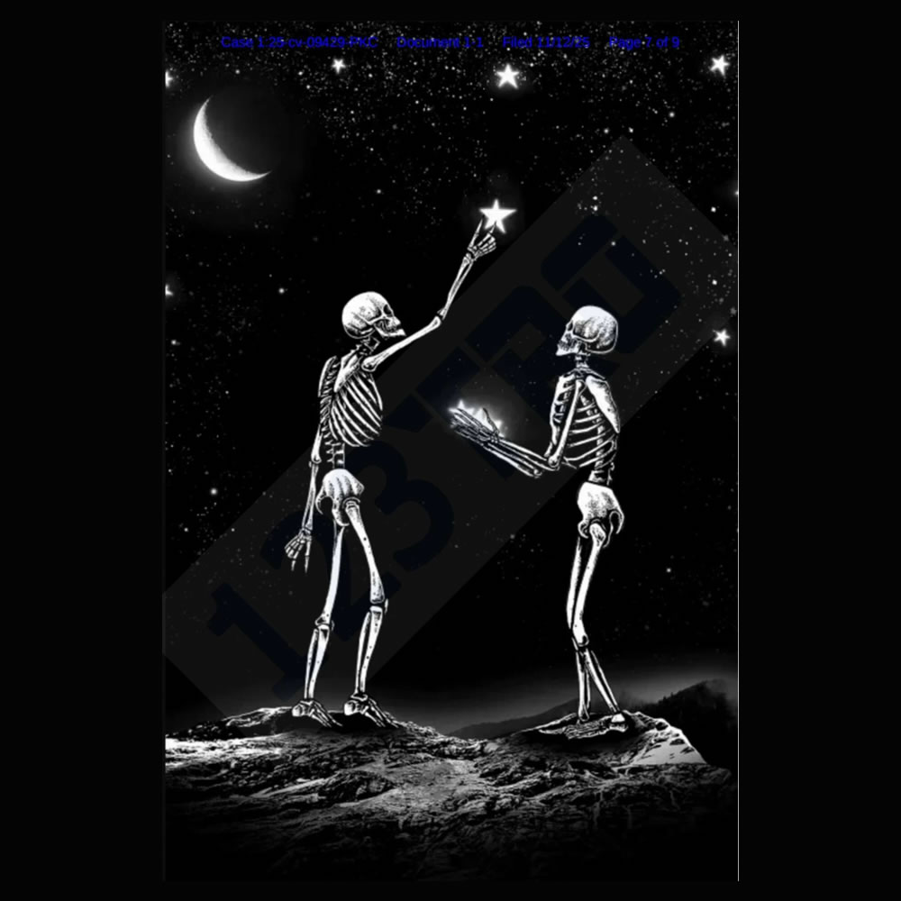 原告Junaid Mortimer是常驻英国的艺术家,画作的核心主题为 黑白的“爱与死亡的浪漫”,融入哥特式元素
