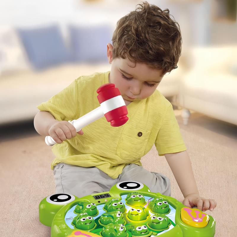 Whack A Frog 游戏是一款以反应为基础的游戏,在孩子努力跟上游戏速度的同时,还能帮助他们提高注意力和手眼协调能力。这款游戏有两种游戏模式,可以增加游戏难度,同时还有 38 种不同的速度模式。只要青蛙一亮,就可以直接击打它,还可以使用数字记分板记录当前得分。孩子不仅能在游戏中获得乐趣,还能学习数字的工作原理和加法的基本概念。