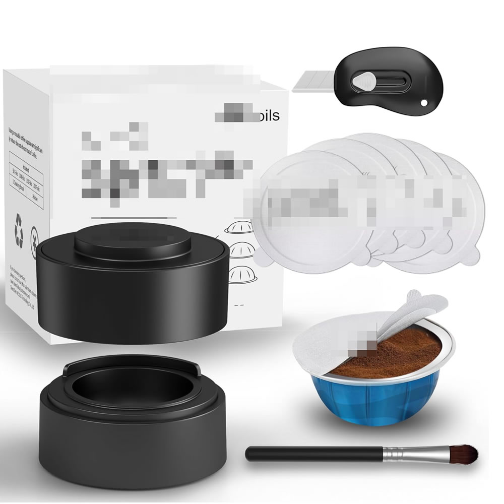 使用这款可填充胶囊套件填充您的可重复使用的咖啡胶囊。 只需将空胶囊放入支架中,加入您最喜欢的咖啡粉,然后使用箔片对齐胶囊的边缘。 然后按下支架的顶盖,获得一个新的胶囊。