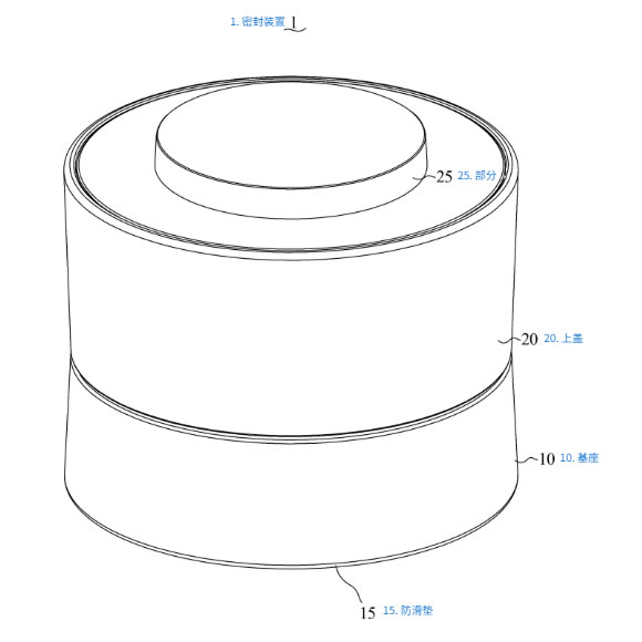 上盖:可以盖在底座上。它的下表面有一个按压部。当上盖合上时,按压部会将顶在挡板处的密封片向下压,使其平整地贴合在胶囊杯口上。上盖下表面还有一个定位凹部,可以让定位挡板插进去并滑动,确保上盖能准确地对准底座。