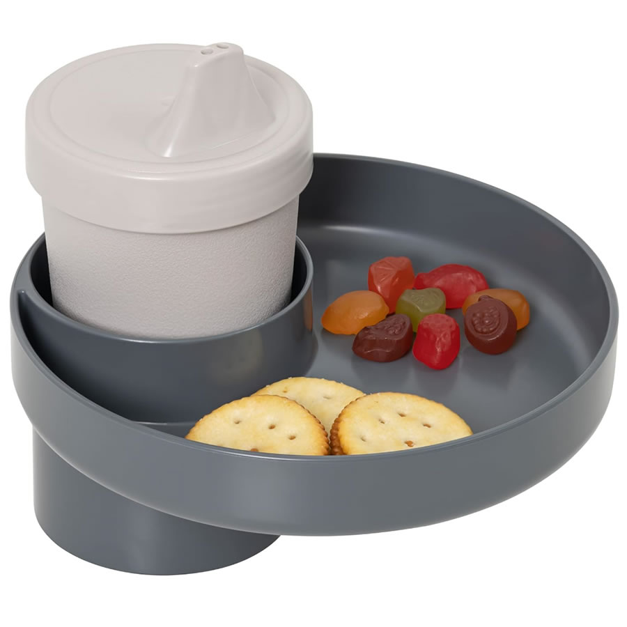 车载杯架托盘设有杯架与零食放置区域,能将零食和饮料放置在孩子身旁的位置,让车内不再有碎屑和溢出物!