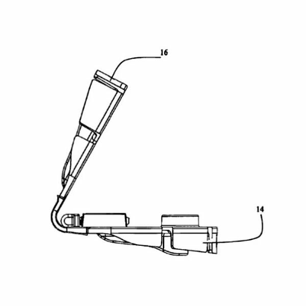 连接两个托盘部分的是两个连接部分(18)和(20),这两个连接部分是柔性的,两个托盘部分的设计或材料或设计与材料的组合是为了将托盘固定在使用者的牙齿上。类似结构均有侵权风险!